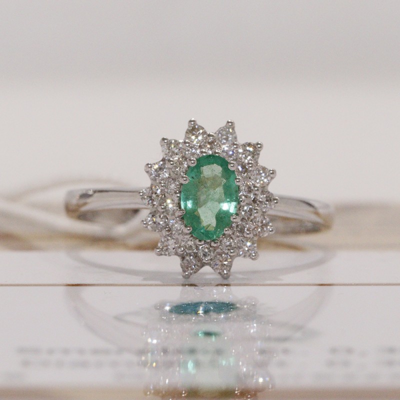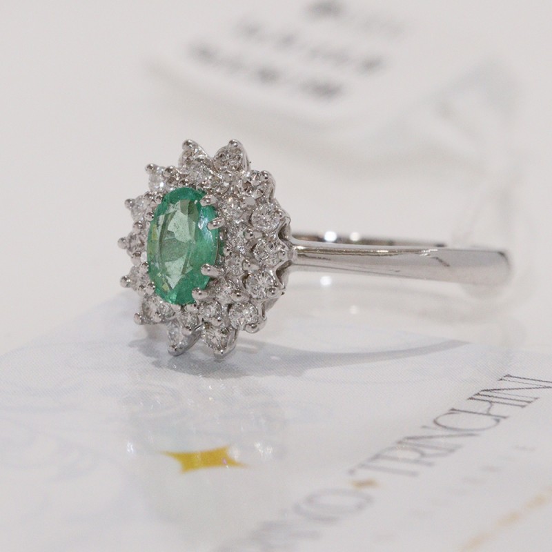 SMERALDO ANELLO DIAMANTI ORO BIANCO18KT KARAL GIOIELLI