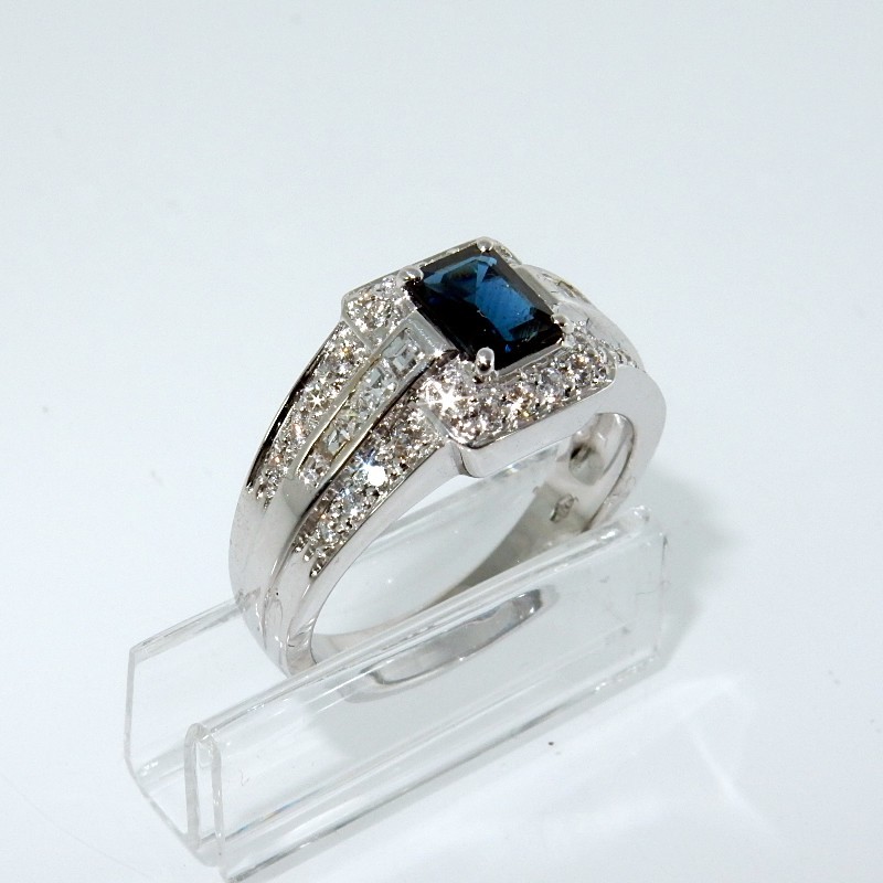 Anello fascia Zaffiro blu e Dimanti certificati in oro bianco 18kt carati