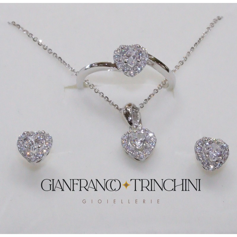 ANELLO ORECCHINI PENDENTE CATENA ORO BIANCO 18KT SAN VALENTINO COMPLETO